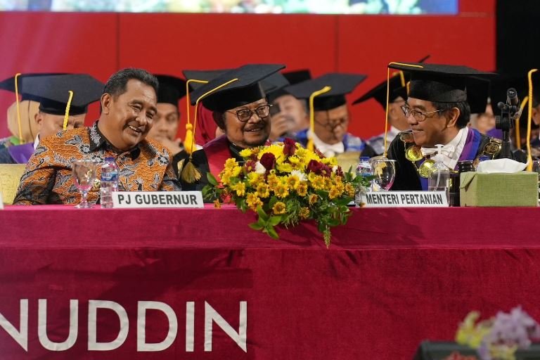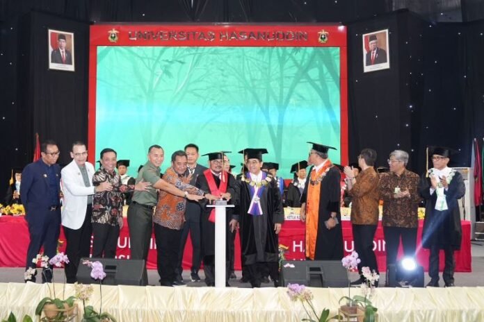 BISNISSULAWESI.COM, MAKASSAR – Penjabat Gubernur Sulsel, Bahtiar Baharuddin, menghadiri Dies Natalis Ke-67 Universitas Hasanuddin (Unhas), di Baruga AP Pettarani Unhas, Sabtu, 9 September 2023. Dies Natalis Unhas kali ini mengangkat tema Succeeding Unhas Toward Global Excellence (Menyukseskan Unhas Menuju Keunggulan Global).