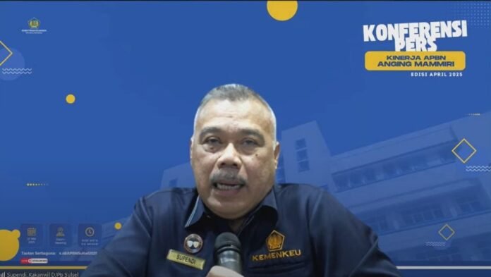 Tangkapan layar, Kepala DJPb Sulsel, Supendi saat memberi keterangan pers bersama Kemenkeu Sulsel secara daring, Rabu (07/05/2025). POTO : BALI PUTRA