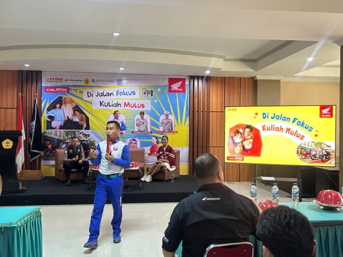 Kali ini, Asmo Sulsel berkolaborasi dengan PT Jasa Raharja Sulawesi Selatan dan Polda Sulawesi Selatan melalui seminar bertajuk “Di Jalan Fokus, Kuliah Mulus”, yang digelar di Sekolah Tinggi Ilmu Ekonomi (STIEM) Bongaya Makassar, Jumat (19/09/2025).