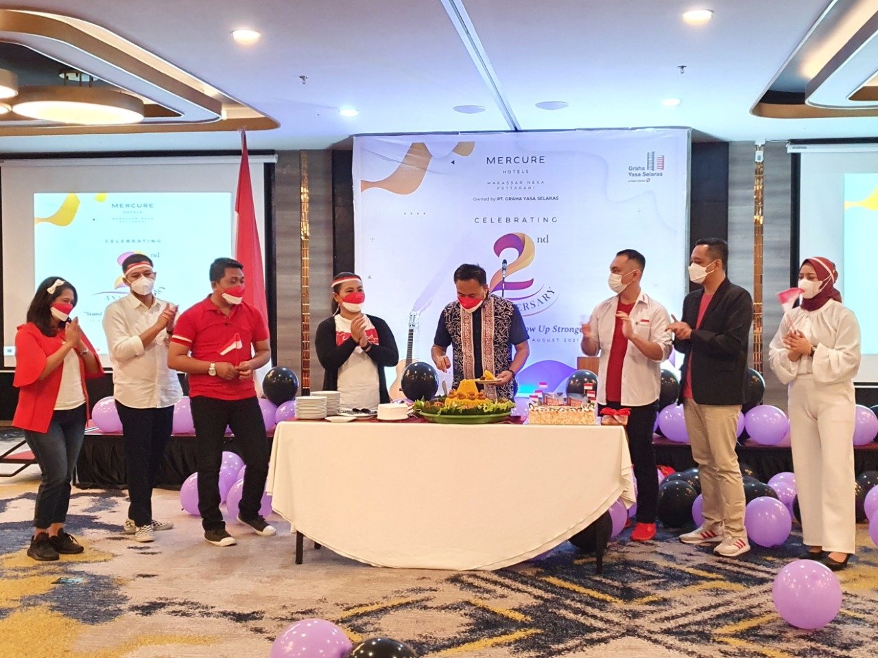 KeBISNISSULAWESI.COM, MAKASSAR – Mercure Makassar Nexa Pettarani genap kini genap berusia 2 tahun. Hotel dengan bangunan bergaya modern dan elegan yang berada di bawah jaringan Accor menghelat acara syukuran, yang juga bertepatan dengan HUT Republik Indonesia yang ke 76, pada Selasa, 17 Agustus 2021.