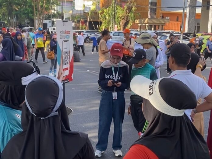 BISNISSULAWESI.COM, MAKASSAR – Tim Lontara+ dari Dinas Komunikasi dan Informatika (Diskominfo) Kota Makassar kembali meramaikan Car Free Day (CFD) di kawasan Jalan Jend. Sudirman, Makassar. Minggu (19/04/2026). Menyapa dan mengedukasi pengunjung, di tengah keramaian aktivitas warga berolahraga dan bersantai.