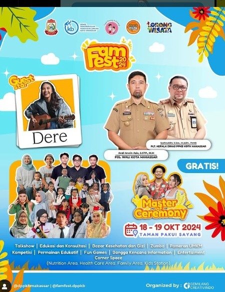 “Masyarakat Makassar dan sekitarnya, ayo persiapkan diri karena Fam Fest 2024 akan segera hadir,” seru Kepala Dinas PPKB Kota Makassar, Syahruddin, Kamis (10/10/2024)
