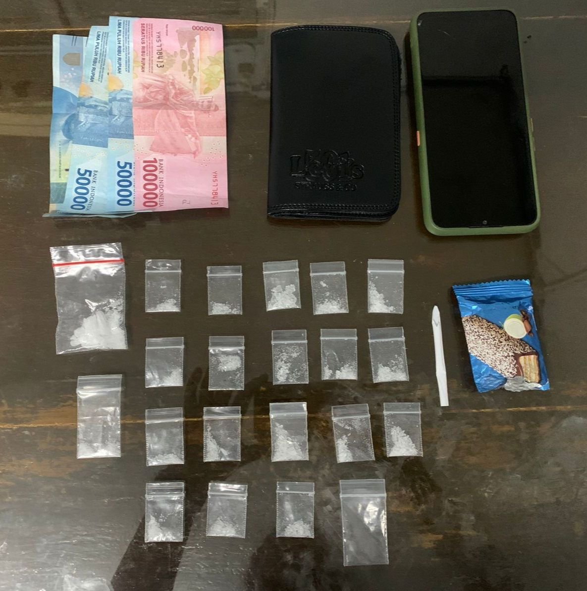 Dari tangan KH diamankan 20 sachet yang diduga berisi narkotika jenis shabu dengan berat bruto 6,26 Gram