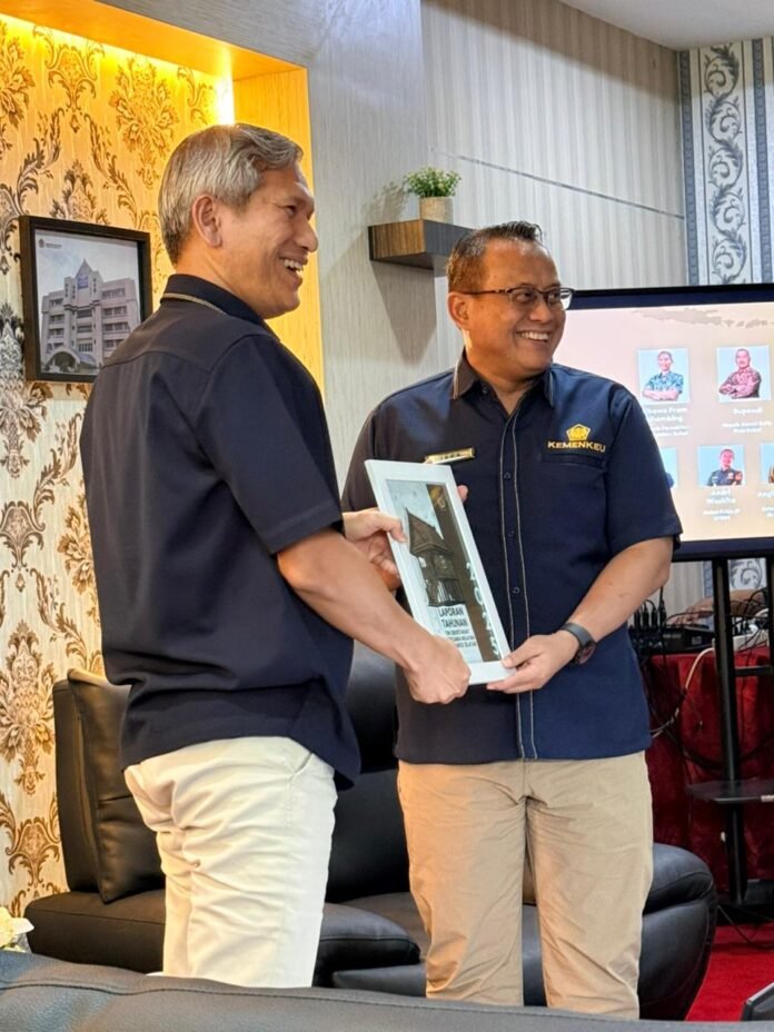 Serah terima jabatan Kepala Perwakilan Kemenkeu Sulsel dari Wibawa Pram Sihombing (Kepala Kanwil DJKN Sulsel) kepada Djaka Kusmartata (Kepala Kanwil DJBC Sulbagsel) yang berlangsung di Aula Sanrobone, Gedung Keuangan Negara (GKN) II Makassar, Jalan Urip Sumoharjo KM. 4 Makassar, Rabu, 14 Januari lalu. POTO: ISTIMEWA