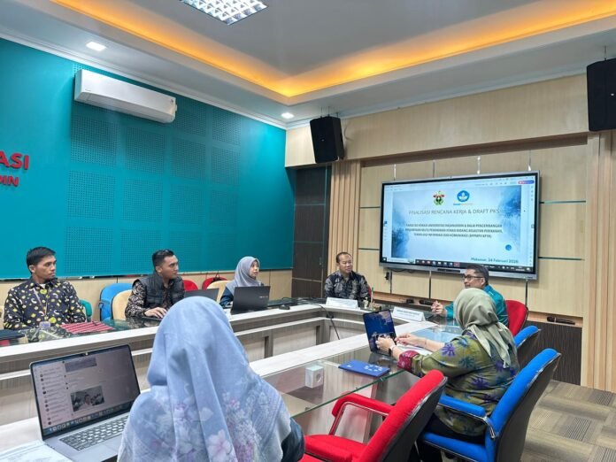 Pertemuan antara Dekan Fakultas Vokasi Unhas, M. Restu, dengan tim Balai Besar PPMPV KPTK yang berlangsung di ruang rapat Fakultas Vokasi, Kampus Unhas Tamalanrea, Makassar, Selasa (24/02/2026). POTO: ISTIMEWA