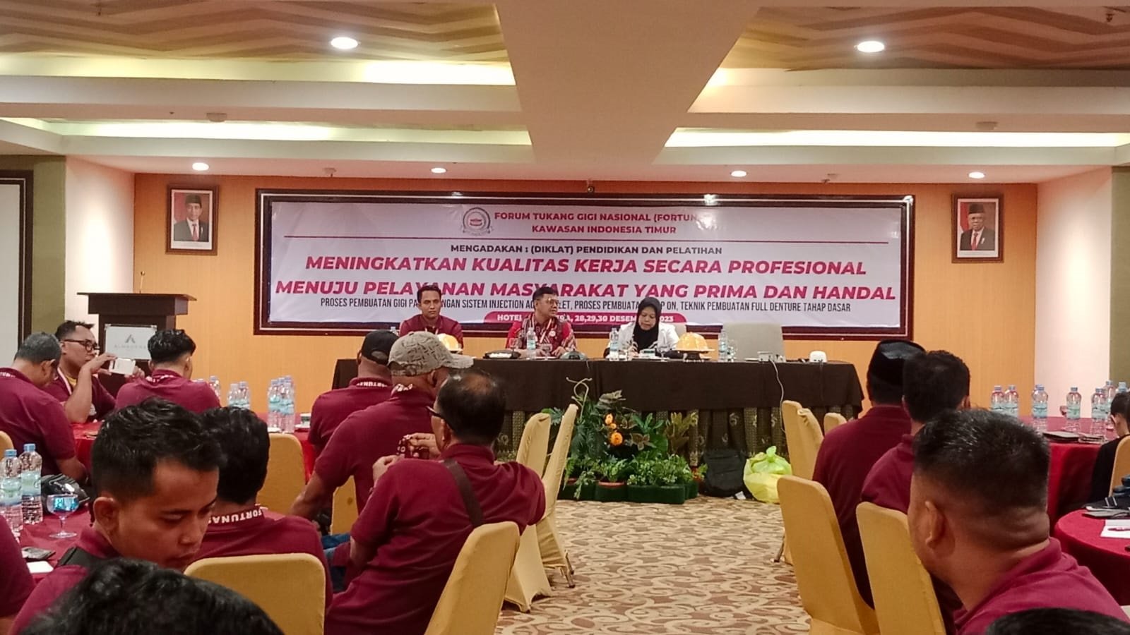 BISNISSULAWESI.COM, MAKASSAR – Forum Tukang Gigi Nasional (FORTUNAS) Kawasan Indonesia Timur menggelar Pendidikan dan Pelatihan (Diklat) selama tiga hari di Hotel Almadera, Makassar, Kamis – Sabtu (28-30/12/2023). Mengambil tema “meningkatkan kualitas kerja seara profesional menuju pelayanan kepada masyarakat yang prima dan andal”.