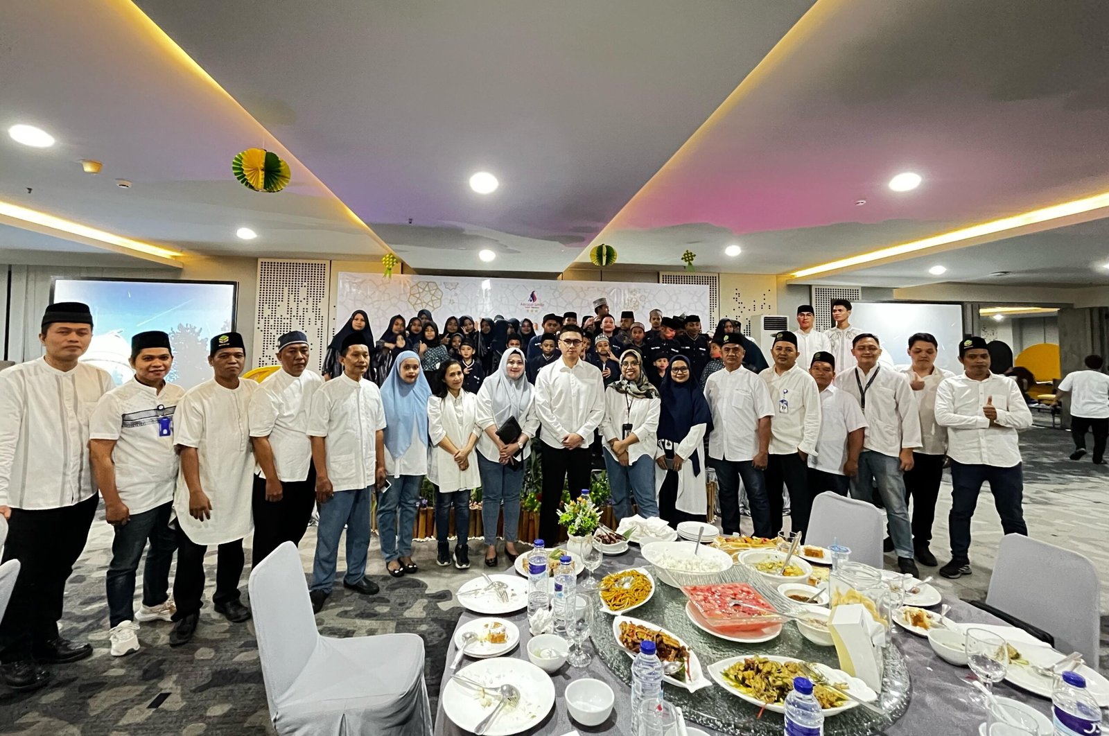 Keluarga besar Aerotel Smile poto bersama anak panti asuhan usai acara buka puasa bersama di Samudra Ballroom Lantai 6, Senin (17/03/2025). POTO : ISTIMEWA
