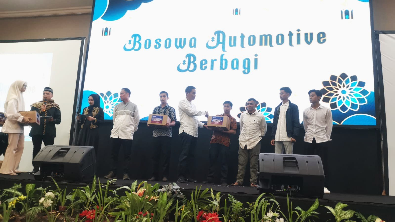 Bosowa Automotive Group bekerja sama Bosowa Peduli membagikan secara simbolis paket sembako kepada warga pada acara buka puasa bersama di Hotel Arya Duta Makassar, Jumat (21/03/2025). POTO : ISTIMEWA