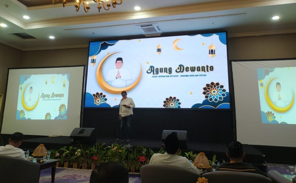 Chief Operation Officer Bosowa Berlian Motor, Agung Dewanto saat menyampaikan pesan ramadannya pada acara buka puasa bersama yang digelar Bosowa Automotive Group di Hotel Arya Duta Makassar, Jumat (21/03/2025). POTO : ISTIMEWA