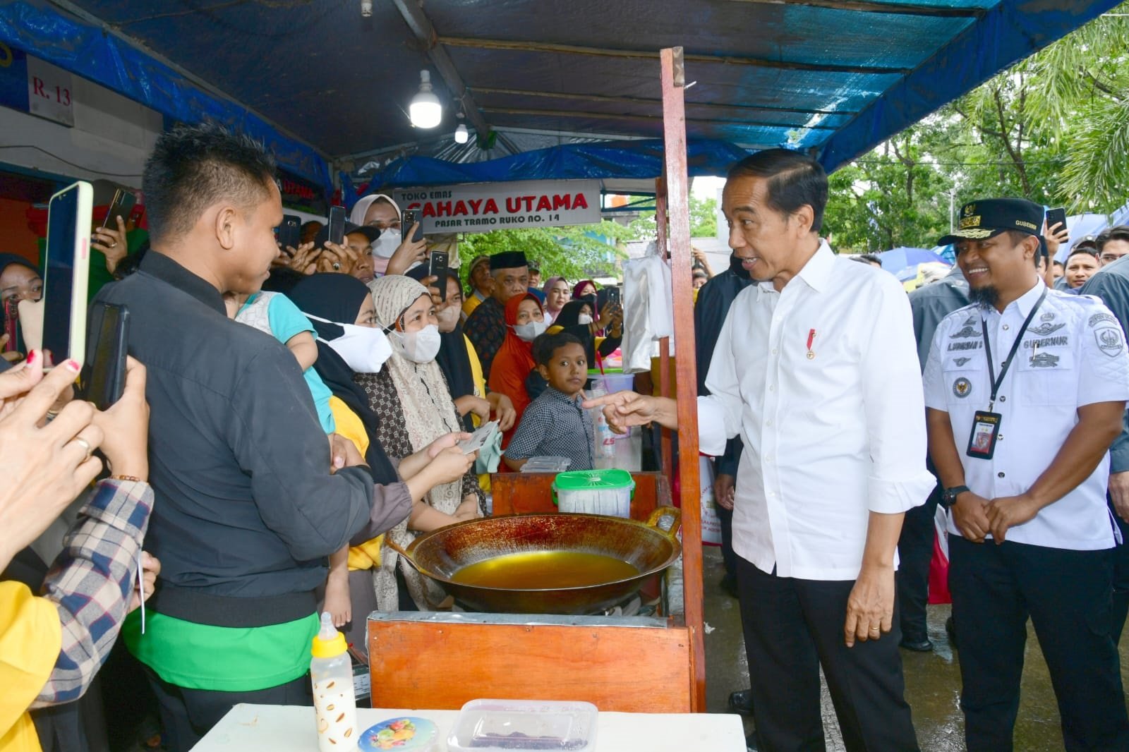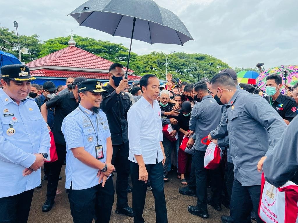 Kedatangan Presiden Jokowi disambut antusias pedagang dan warga sekitar pasar. Selain meninjau harga dan kebutuhan pokok, Presiden Jokowi juga membagi Bantuan Langsung Tunai (BLT) dan paket sembako.