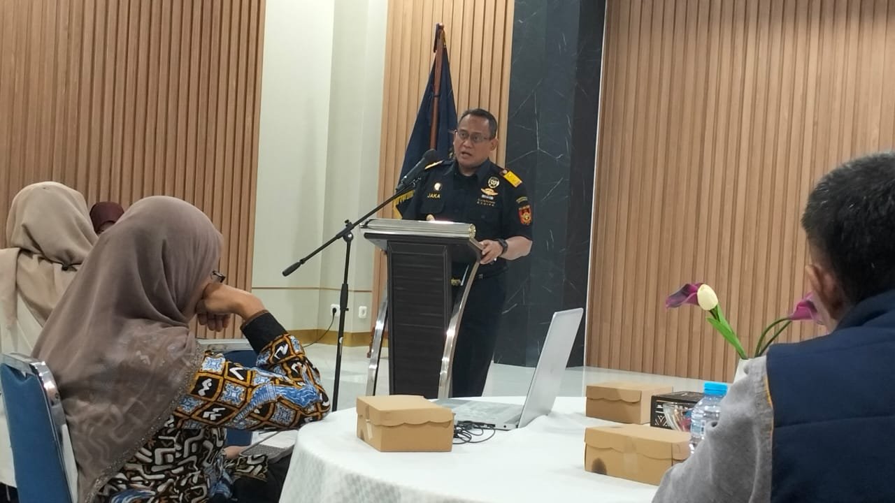 Kepala Kanwil DJBC Sulbagsel, Djaka Kusmartata saat memaparkan realisasi kinerja Bea Cukai Sulbagsel pada "Media Gathering Bea Cukai Semester II-2025", Jumat (12/12/2025). POTO: BALI PUTRA