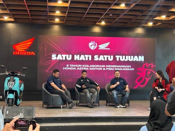 BISNISSULAWESI.COM, MAKASSAR – Honda Astra Motor Sulawesi Selatan selaku main dealer sepeda motor Honda untuk wilayah Sulawesi Selatan, Barat, Tenggara, dan Ambon, kembali menjadi sponsor utama PSM Makassar dalam kompetisi Liga I musim 2025-2026. Ini, musim kedelapan secara berturut-turut Honda Astra Motor Sulawesi Selatan memberi dukungan penuh kepada klub sepakbola kebanggaan Sulsel tersebut.