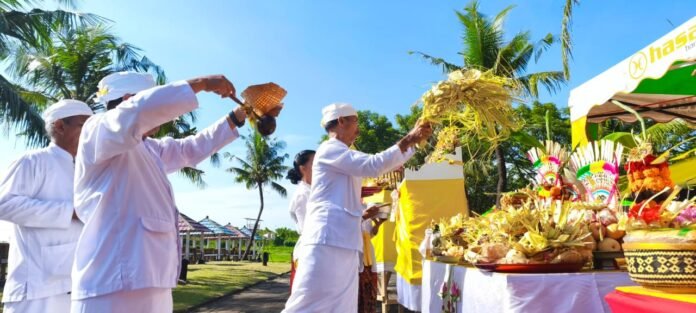 Upacara dipimpin pendeta Hindu, Ida Pandita Isteri Sri Patni Yogini didampingi tiga pinandita (rohaniawan), Pinandita Wayan Nentra, Pinandita Gede Sudarpa dan Pinandita Made Sedana.