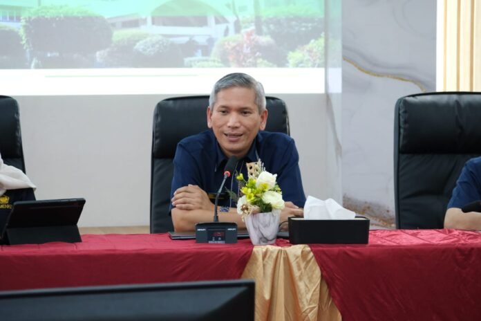Kanwil DJKN Sulseltrabar, Wibawa Pram Sihombing saat memaparkan realisasi BMN di wilayah Sulseltrabar hingga Januari 2026 di GKN II Makassar, Rabu (25/02/2026). POTO: ISTIMEWA