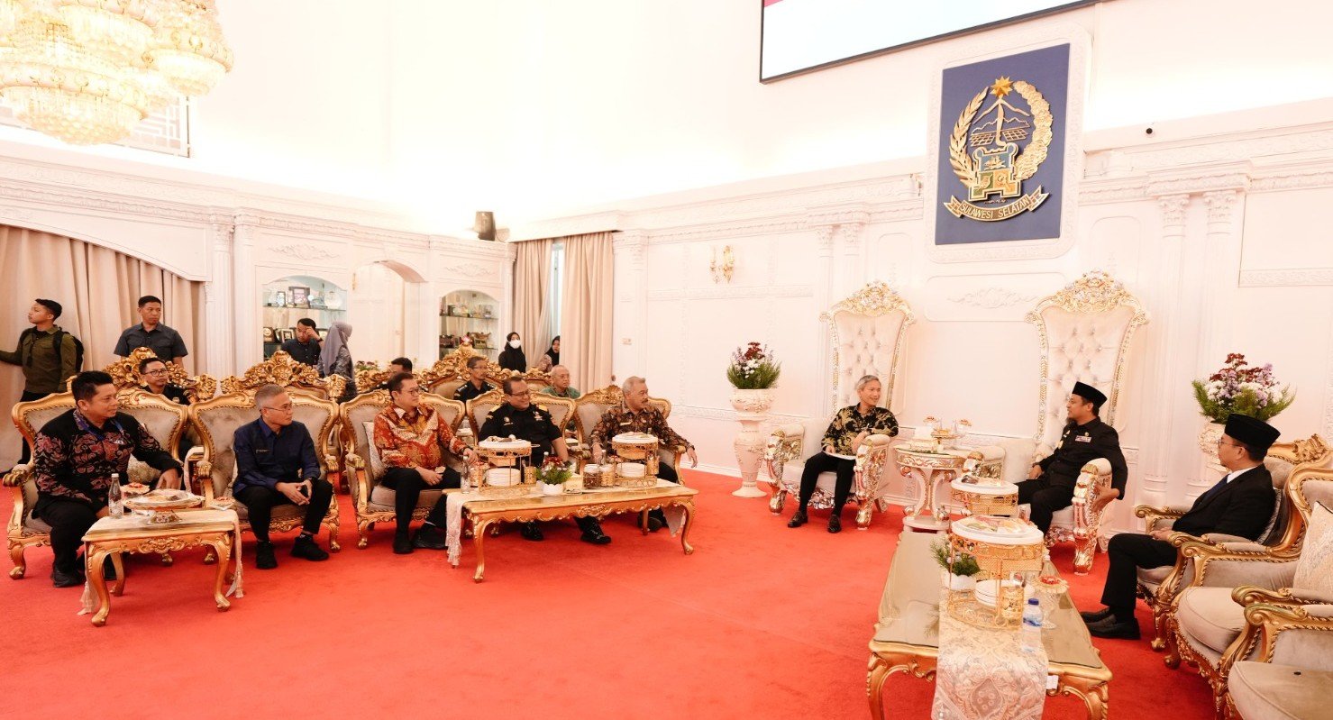 Kanwil DJP Sulselbartra, YFR Hermiyana bersama petinggi Kemenkeu I Sulsel saat bertemu Gubernur Sulsel, Andi Sudirman Sulaiman di Rumah Jabatan Gubernur, Kamis (31/07/2025). POTO : ISTIMEWA