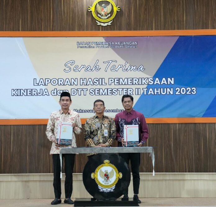 BISNISSULAWESI.COM, MAKASSAR – Ketua DPRD Kota Makassar, Rudianto Lallo menerima Laporan Hasil Pemeriksaan Kinerja (LHPK) Semester II/2023 Pemkot Kota Makassar, di Aula Kantor BPK Perwakilan Provinsi Sulawesi Selatan, Makassar, Jumat (19/01/2024).