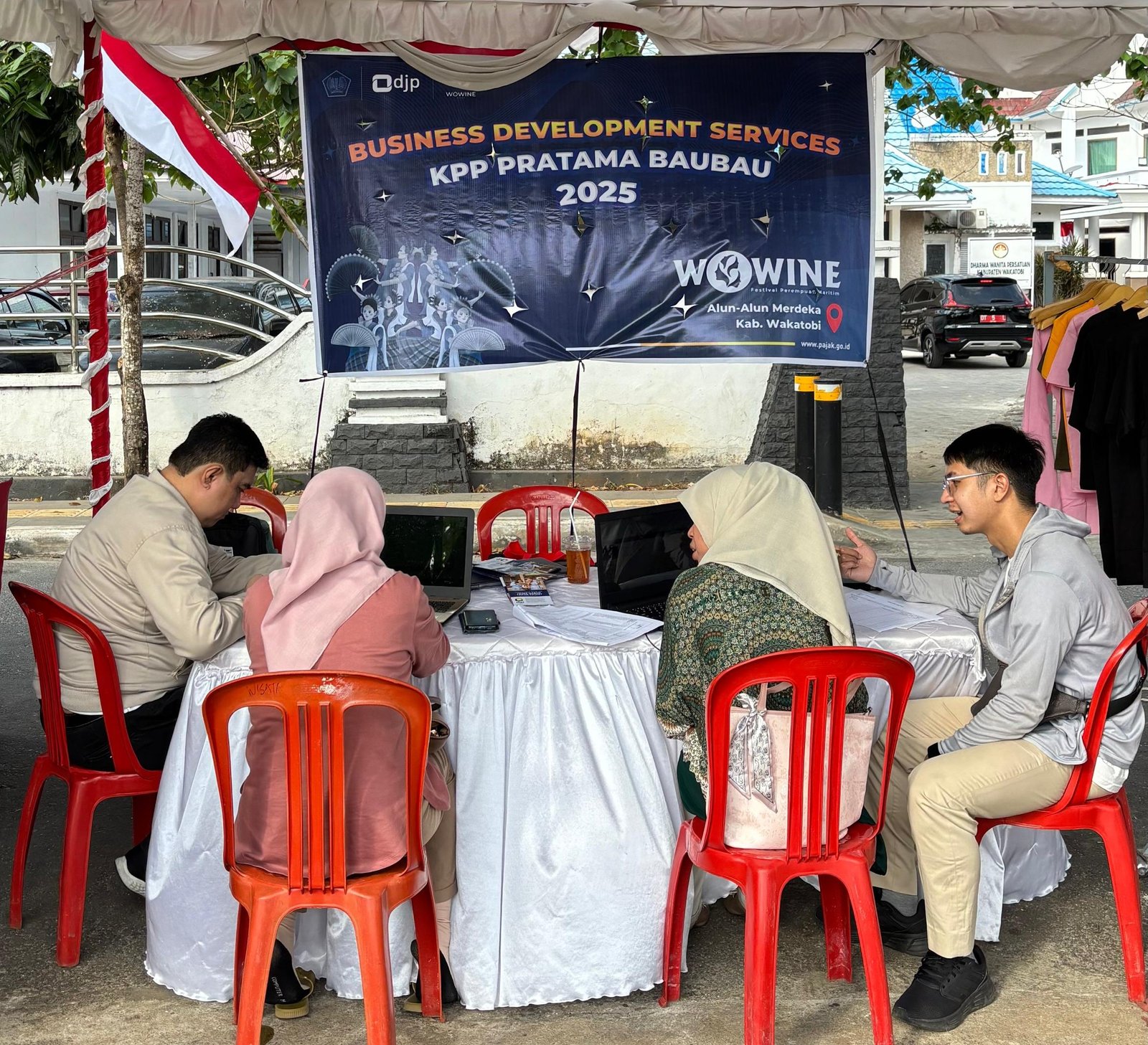 KPP Pratama Baubau membuka BDS khusus bagi pelaku UMKM perempuan di Festival Wanita Maritim Wowine 2025 di Alun-Alun Merdeka Wangi-Wangi, Wakatobi, Sabtu (23/08/2025). POTO : ISTIMEWA