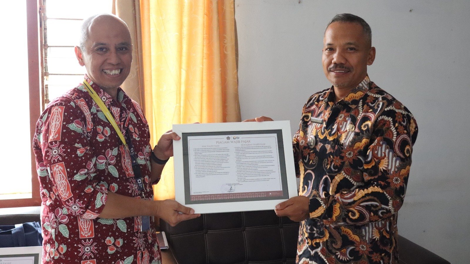 “Selama ini masih banyak warga ragu soal pajak, karena merasa tidak tahu apa saja hak dan kewajiban mereka. Adanya piagam ini, kami lebih percaya diri menyampaikan penjelasan kepada masyarakat,” ungkap Kadang.