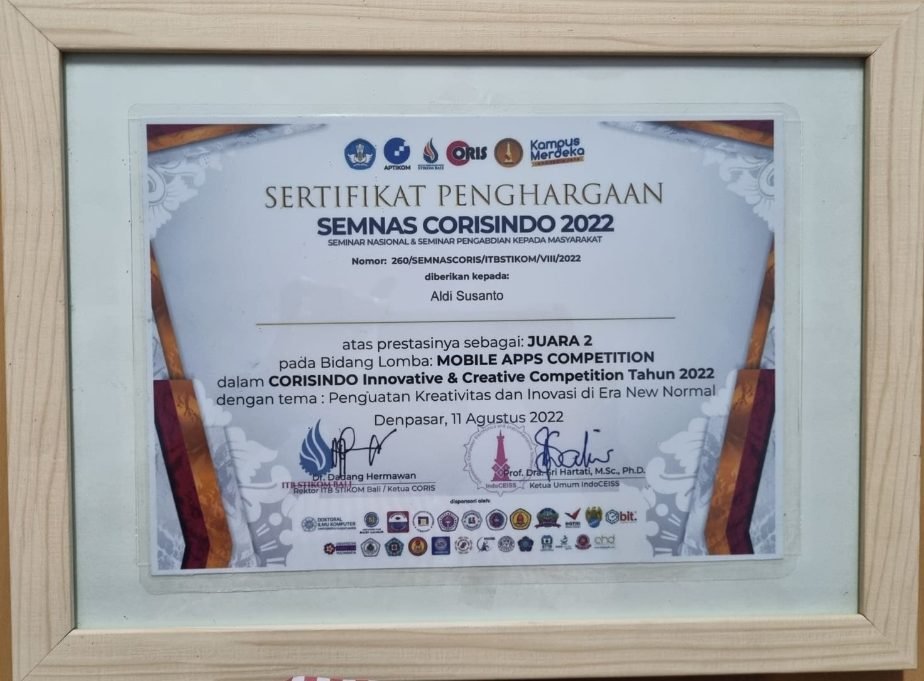 Di bidang lomba yang sama (Mobile Apps Competition, red) Aldi Susanto mengungguli beberapa peserta lain dari berbagai kampus di Indonesia diantaranya Ahmad Zaini dari STIMIK Widya Cipta Darma yang menyabet juara III, kemudian juara harapan I, Anhar dari Sekolah Tinggi Ilmu Komputer PGRI Banyuwangi dan juara harapan II, Azmi Anggara Darmawangsa dari STIMIK Pontianak. Sementara diposisi pertama diraih mahasiswa dari Universitas Klabat, Ananda Aditya.