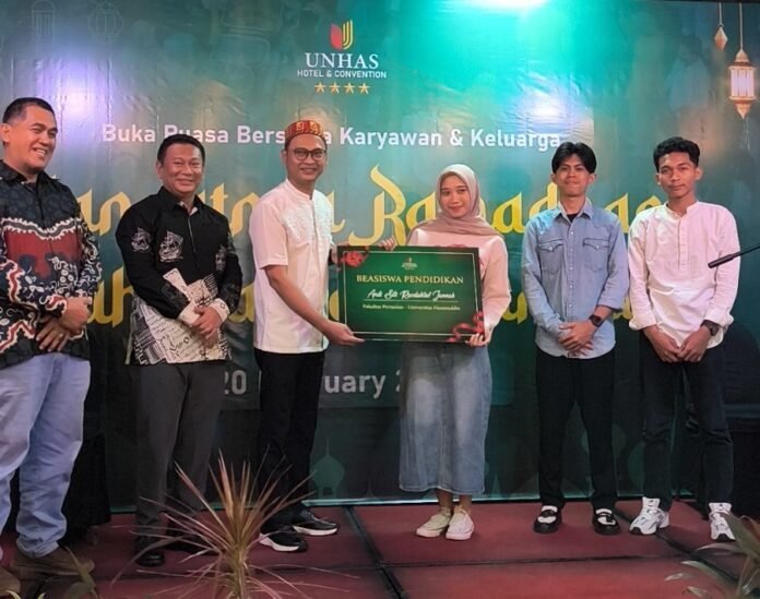 BISNISULAWESI.COM, MAKASSAR – Manajemen Unhas Hotel & Convention menggelar buka puasa bersama karyawan hotel dan keluarga, komisaris, sekaligus dirangkai pemberian beasiswa kepada mahasiswa kurang mampu, Jumat(20/02/2026).