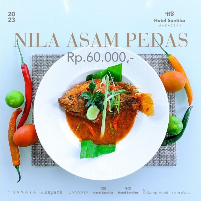 BISNISSULAWESI.COM, MAKASSAR – Khusus di Januari 2023, Hotel Santika menawarkan Nila Asam Pedas sebagai Food of the Month. Harga yang ditawarkan terjangkau, Rp. 60.000,-nett per porsi.