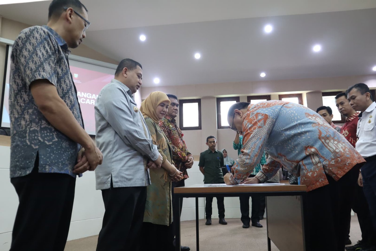 Kegiatan dilanjutkan dengan penandatanganan berita acara yang didampingi Kepala Bappeda Andi Zulkifli Nanda, jajaran staf ahli, dan asisten.