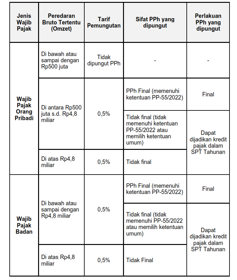 Pokok pengaturan dalam PMK 37/2025 mencakup mekanisme penunjukan marketplace sebagai pemungut Pajak Penghasilan (PPh) Pasal 22 atas transaksi yang dilakukan pedagang (merchant) dalam negeri. Dalam pelaksanaannya, merchant diwajibkan menyampaikan informasi kepada pihak marketplace sebagai dasar pemungutan. PMK ini juga mengatur tarif pemungutan PPh Pasal 22 sebesar 0,5 persen, yang dapat bersifat final maupun tidak final.