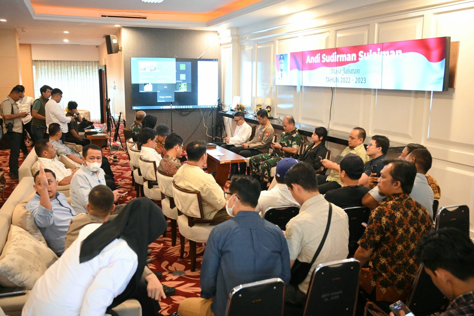 Rapat dipimpin Sekretaris Daerah Provinsi Sulsel, Jufri Rahman, di Baruga Lounge, Kantor Gubernur Sulsel, Jumat (14/03/2025).