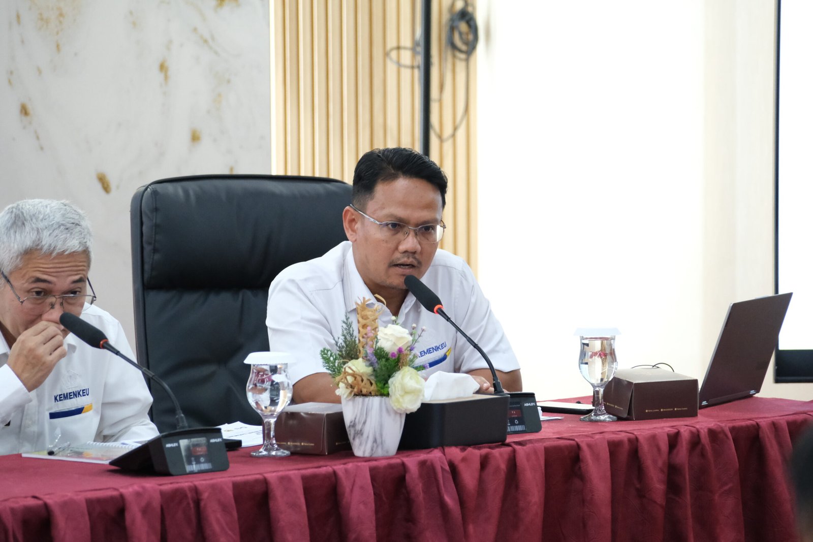 Kepala Bidang Kepatuhan Internal, Hukum, dan Informasi, Kanwil DJKN Sulseltrabar, Nandang Supriyadi saat memaparkan penerimaan negara bukan pajak dari lelang di Gedung Keuangan Negara (GKN) II, Senin (26/01/2026). POTO: ISTIMEWA