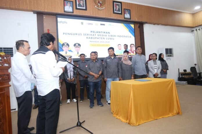 BISNISSULAWESI.COM, LUWU – Kepengurusan baru Serikat Media Siber Indonesia (SMSI) Kabupaten Luwu resmi dilantik. Dalam pelantikan yang dihadiri unsur Forkopimda, pengurus SMSI Sulawesi Selatan, insan pers, serta jajaran Pemerintah Kabupaten Luwu, sekaligus mengukuhkan, Chaeruddin sebagai Ketua SMSI Luwu.