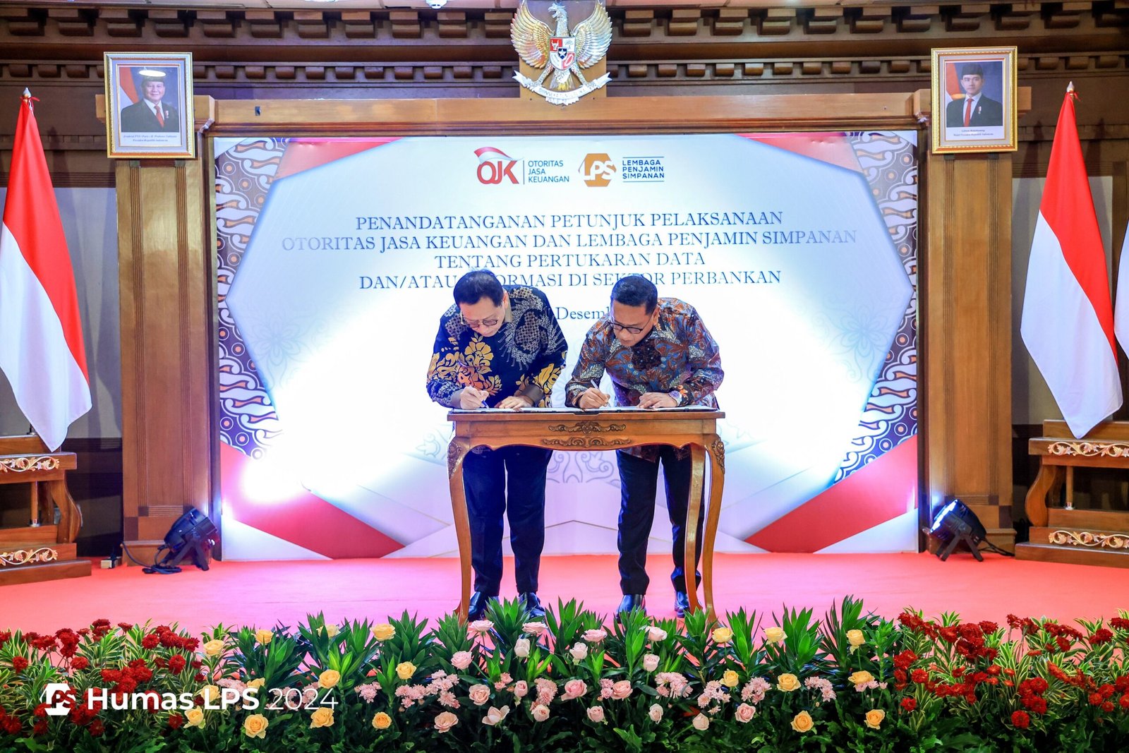LPS dan OJK bersinergi dalam memperkuat koordinasi pengawasan, penjaminan dan resolusi perbankan dengan melakukan penandatanganan Juklak pertukaran data dan informasi sektor perbankan yang lebih terbuka. POTO : ISTIMEWA
