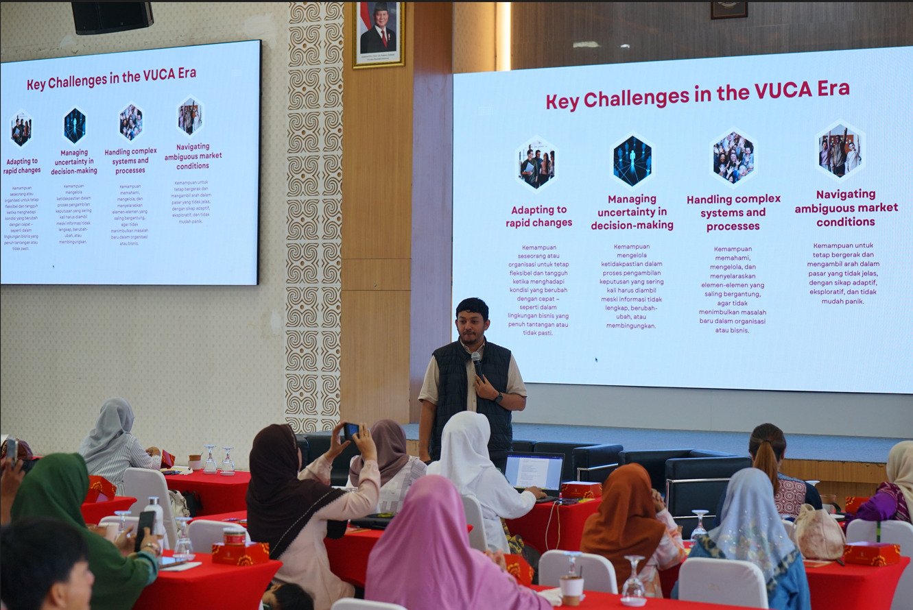 “UMK Academy menjadi wadah strategis bagi pelaku usaha untuk tidak hanya memahami siklus bisnis, juga mengasah kemampuan kepemimpinan, ketahanan mental, dan adaptasi terhadap tantangan era VUCA (Volatility, Uncertainty, Complexity, Ambiguity),” katanya.