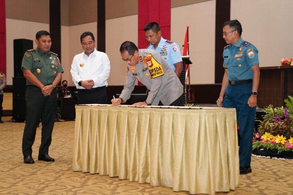 Rakor ditutup dengan penandatanganan naskah perjanjian kerjasama antara Kepolisian Daerah (Polda) Sulsel dengan TNI AU dan TNI AL. (*)