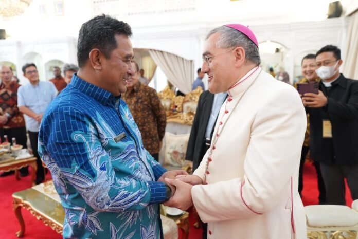 BISNISSULAWESI.COM, MAKASSAR – Penjabat Gubernur Sulsel, Bahtiar Baharuddin, menjamu Dubes Vatikan Monsinyur Pioppo, Ketua Konferensi Waligereja Indonesia KWI Monsinyur Anton dan Para Uskup, di Rujab Gubernur Sulsel, Rab (31/01/2024). Pertemuan silaturahmi yang penuh keakraban tersebut berlangsung kurang lebih satu jam.