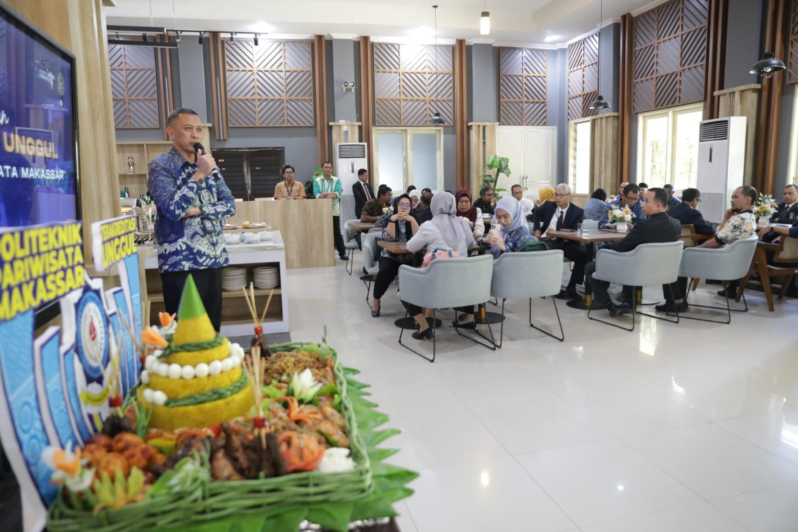 Poltekpar Makassar menggelar syukuran, atas raihan akreditasi institusi dengan predikat unggul dari BAN-PT. Syukuran berlangsung di Bugis Restoran kampus Poltekpar Makassar dan dihadiri seluruh civitas akademika. POTO : ISTIMEWA