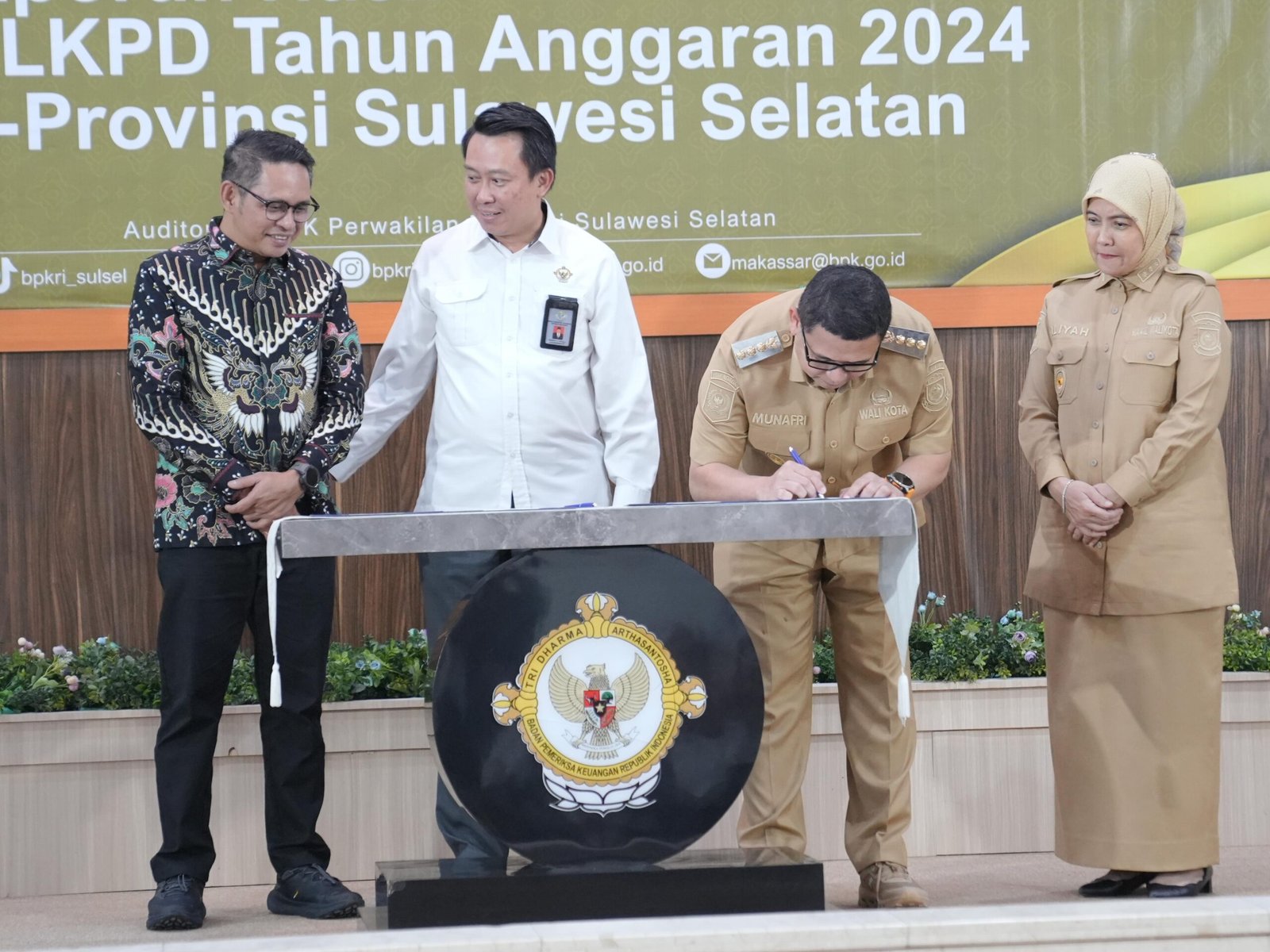 Laporan hasil pemeriksaan diterima langsung Wali Kota Makassar, Munafri Arifuddin didampingi Wakil Wali Kota, Aliyah Mustika Ilham dan Ketua DPRD Makassar Supratman. Penyerahan berlangsung di Auditorium BPK Sulsel, Senin (26/05/2025).