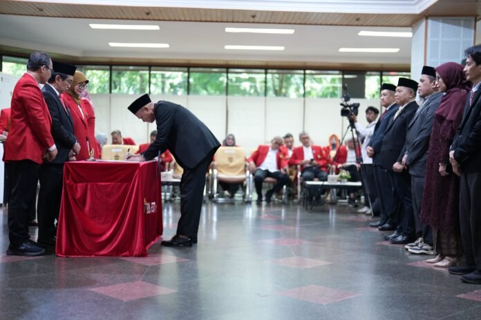 BISNISSULAWESI.COM, MAKASSAR – Rektor Universitas Hasanuddin (Unhas), Jamaluddin Jompa (Prof. JJ) melantik 47 pejabat di lingkup Unhas, Senin (09/02/2026). Sekaligus memberikan Surat Keputusan Jabatan Guru Besar kepada 23 dosen, serta menerima kembali 10 dosen yang telah menyelesaikan studi Program Doktor (S3) untuk kembali menjalankan tugas akademik di lingkungan Unhas.