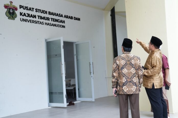 BISNISSULAWESI.COM, MAKASSAR – Rektor Universitas Hasanuddin (Unhas), Jamaluddin Jompa meresmikan Pusat Studi Bahasa Arab dan Kajian Timur Tengah, di lantai dasar Masjid Kampus Unhas Tamalanrea, Jumat (06/03/2026).