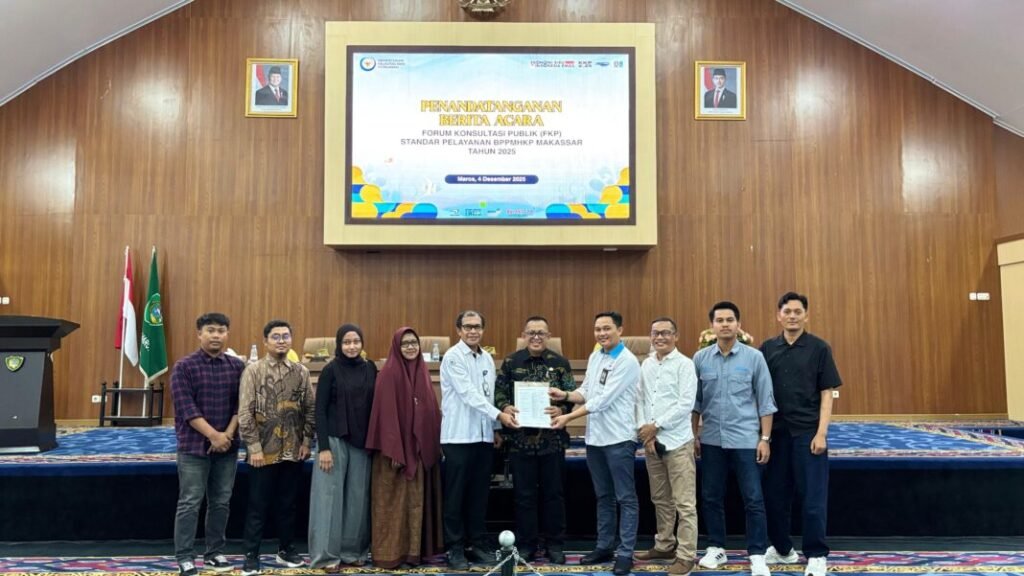 bisnissulawesi.com, MAROS – Badan Mutu KKP Makassar menggelar Forum Konsultasi Publik Standar Pelayanan, di Ruang Pola Kantor Bupati Maros, Kamis (04/12/2025). Kegiatan dibuka Plt. Kepala Badan Mutu KKP Makassar, Mohammad Zamrud, dihadiri instansi terkait, pemerintah daerah, akademisi, asosiasi, LSM dan pelaku usaha secara hybrid (tatap muka dan daring).