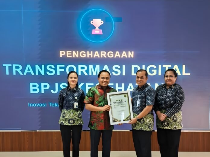 Penghargaan diserahkan Kepala Cabang BPJS Kesehatan Makassar, Aras. Ia menyebutkan, transformasi digital BPJS Kesehatan bertujuan memastikan layanan JKN semakin efisien, transparan, dan berorientasi pada kenyamanan peserta.