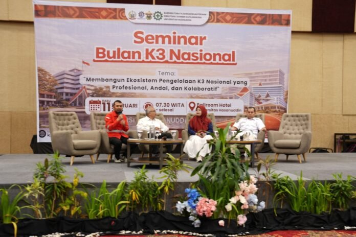 Hal itu disampaikan Konsultan K3, St. Nur Insani pada seminar “Bulan K3 Nasional” yang digelar Subdirektorat Keselamatan, Kesehatan Kerja dan Kesejahteraan (K3K), Direktorat Sumber Daya Manusia (SDM) Universitas Hasanuddin (Unhas), di Balroom Hotel Unhas & Convetion, Rabu (11/02/2026).