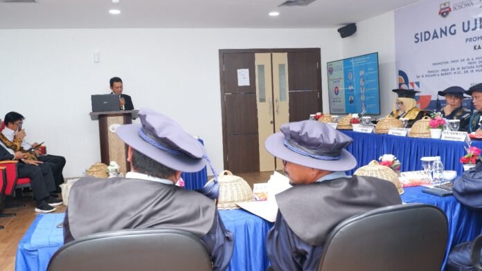 BISNISSULAWESI.COM, MAKASSAR – Program Studi Doktor (S3) Perencanaan Wilayah dan Kota (PWK) Universitas Bosowa (Unibos) menyelenggarakan Sidang Ujian Promosi dengan Promovendus Kastono. Kegiatan dilaksanakan Ruang Teater Pascasarjana, Menara Bosowa lantai 12, Senin (24/02/2025).