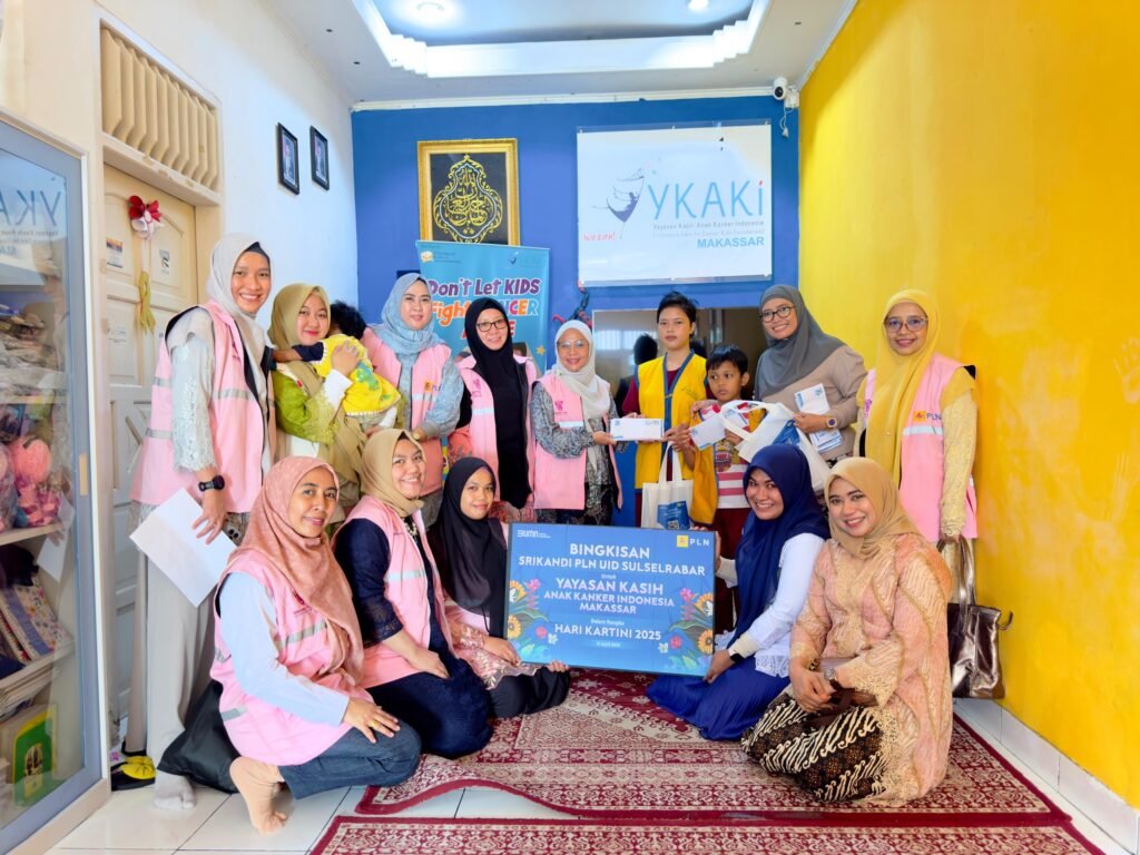 BISNISSULAWESI.COM, MAKASSAR – Memperingati Hari Kartini, Srikandi PT PLN (Persero) Unit Induk Distribusi Sulawesi Selatan, Sulawesi Tenggara, dan Sulawesi Barat (UID Sulselrabar) bersama Yayasan Baitul Maal (YBM) PLN menunjukkan semangat kepedulian sosial dengan mengunjungi Yayasan Kasih Anak Kanker Indonesia (YKAKI) Cabang Makassar, Senin (21/04/2025). Kegiatan ini bertujuan memberikan semangat dan dukungan kepada anak-anak pejuang kanker yang tengah menjalani pengobatan.