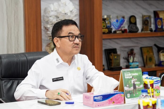 Sekda Sulsel, Jufri Rahmansaat memimpin rapat percepatan pembentukan Koperasi Desa/Kelurahan Merah Putih secara virtual, Rabu (21/05/2025). POTO : ISTIMEWA
