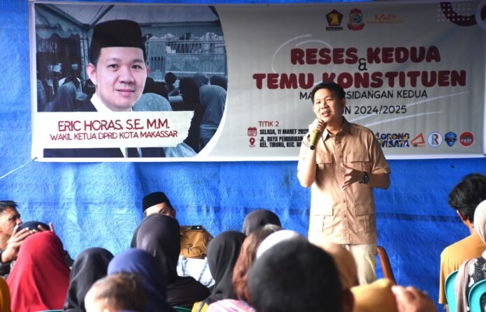 BISNISSULAWESI.COM, MAKASSAR – Wakil Ketua DPRD Makassar, Eric Horas memulai reses kedua masa persidangan kedua tahun 2024/2025 dengan menemui konstituennya.