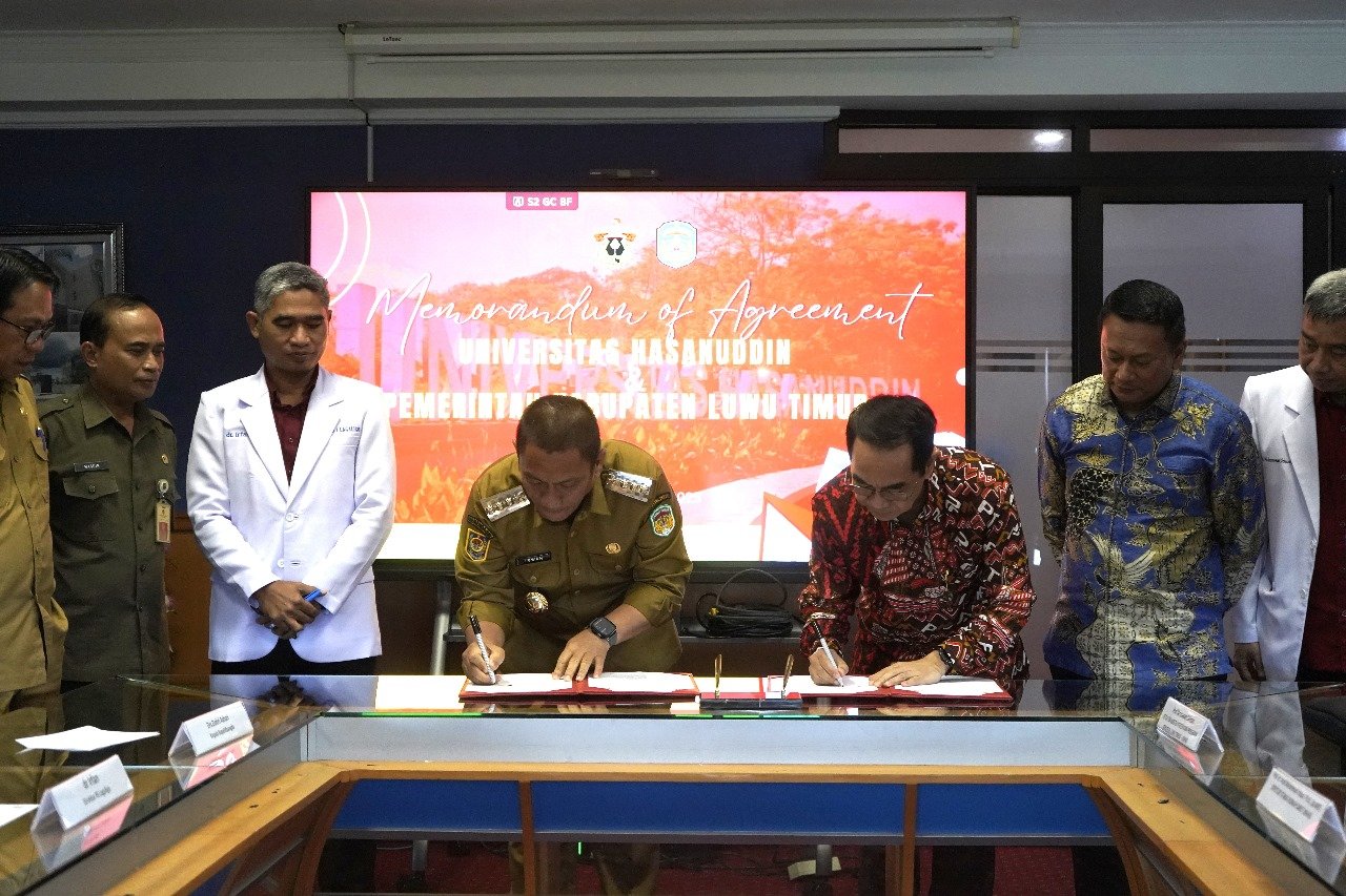 Unhas dan Pemkab Lutim menyepakati kerja sama bidang penguatan SDM dan layanan kesehatan melalui penandatanganan MoA antara Rektor Unhas, Jamaluddin Jompa dengan Bupati Lutim, Irwan Bachri Syam, Selasa (11/03/2025). POTO : ISTIMEWA