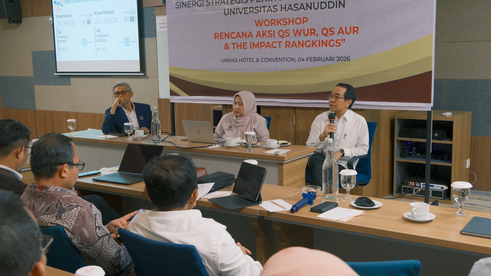Ini merupakan upaya terstruktur Unhas dalam menyelaraskan kebijakan, program, serta indikator kinerja institusi agar sejalan dengan standar pemeringkatan universitas tingkat dunia. Workshop dilaksanakan di Innovate Room, Unhas Hotel & Convention, Rabu (04/02/2026).