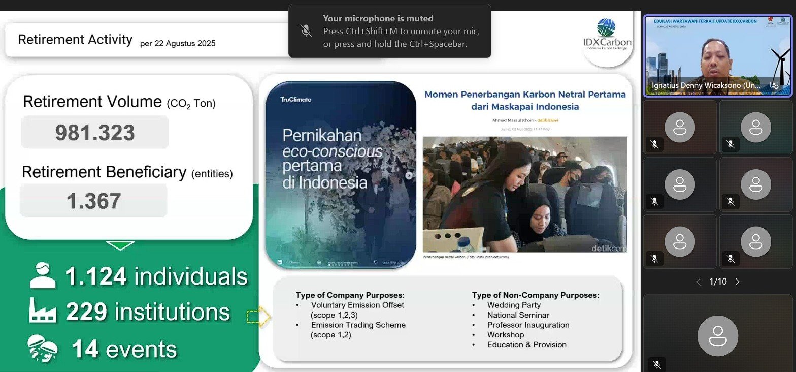 “Hingga 22 Agustus 2025, terdapat 20 Pengguna Jasa Bursa Karbon baru, sehingga total Pengguna Jasa Bursa Karbon menjadi 119,” sebut Ignatius Denny.