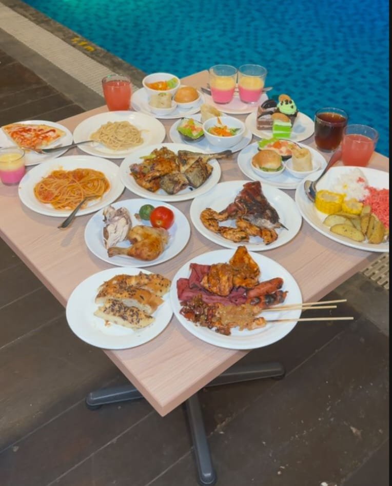 Tak ketinggalan, tersedia pula aneka sosis, pasta, jagung manis dan mini burger serta nasi goreng spesial, salad bar, sup hangat, dessert manis, buah potong dan aneka sambal khas lokal Makassar yang melengkapi pengalaman kuliner tak terlupakan bagi setiap tamu yang berkunjung.