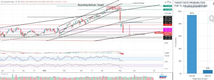 BISNISSULAWESI.COM, MAKASSAR – IHSG Kamis (12/05) melanjutkan pelemahan d itengah kekhawatiran tingginya inflasi global akibat naiknya ketegangan geopolitik yang berujung pada tingginya harga komoditas. Tingginya inflasi Amerika Serikat yang mencapai 8.3% memicu probabilitas kenaikan suku bunga The Fed hingga 150 bps. Sehingga hal ini membuat pelaku pasar khawatir akan perlambatan ekonomi.